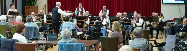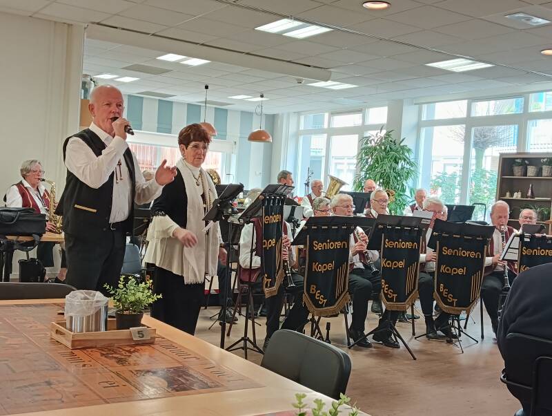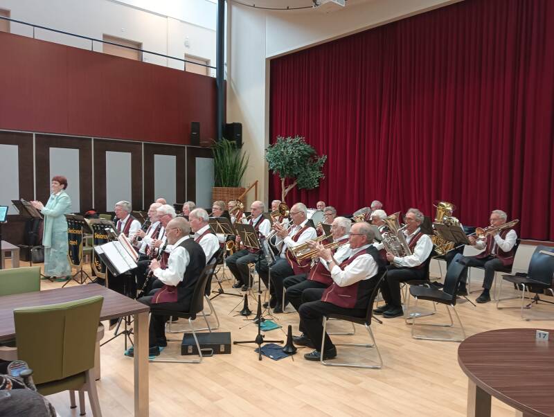 Een heel mooi en fijn optreden mogen doen voor een zeer dankbaar publiek, bewoners en gasten. Veel nieuwe nummers zoals medley van Bert Kaempfert, bugelsolo ,Flügelhorn serenade' Jasmin en meer.