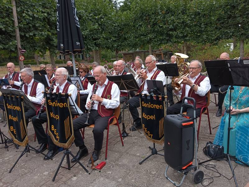 Zondag 17 aug. 15.00-16.30 Optreden in zorgcentrum Grootenhout Broek 14 Mariahout Het was weer een prachtige middag voor de bewoners, gasten en personeel van zorgcentrum Grootenhout in Mariahout. Wat een geweldige sfeer en mooie muziek met veel meezingers van vroeger. Het was genieten voor de aanwezigen en de muzikanten van de Seniorenkapel-Best.